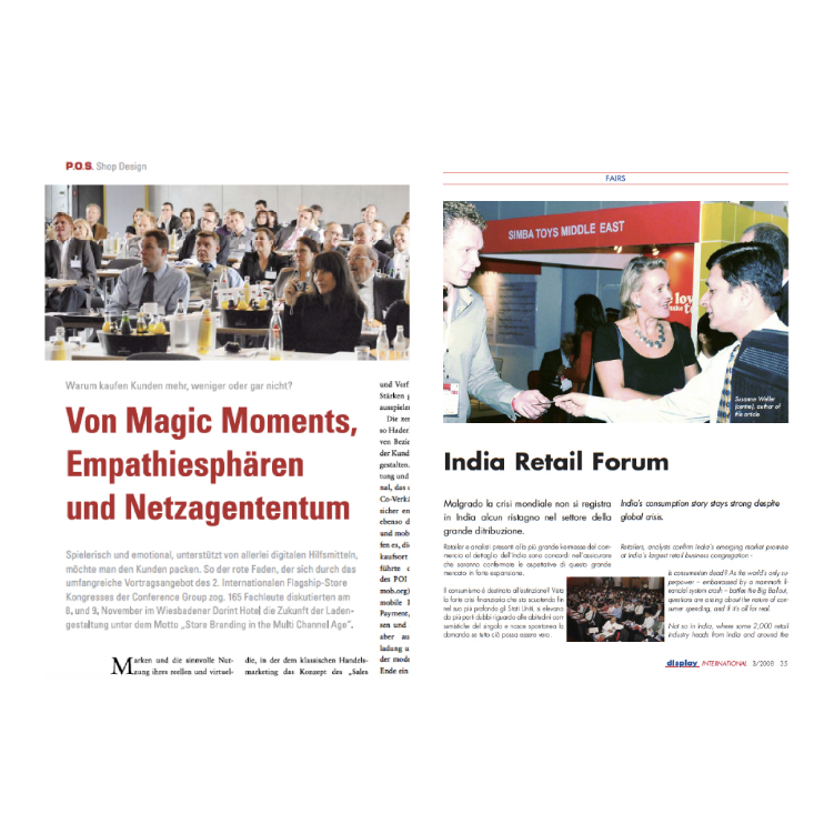A selection of articles and project presentations, written in both German and English, authored and published in international trade magazines — showcasing editorial expertise, industry insight and successful communication across markets.